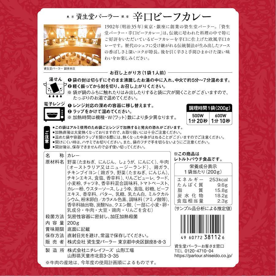 資生堂パーラー 辛口ビーフカレー 5個パック【ご確認ください】辛口ビーフカレーを5個、透明のビニールまたはビニール袋でパックにしております。賞味期限:製造日より545日1個あたり内容量:200g【重要】メーカーによる商品リニューアルに伴いパッケージ(内容量も含む)変更が行われた場合、新パッケージでお届け致します事ご了承願います。