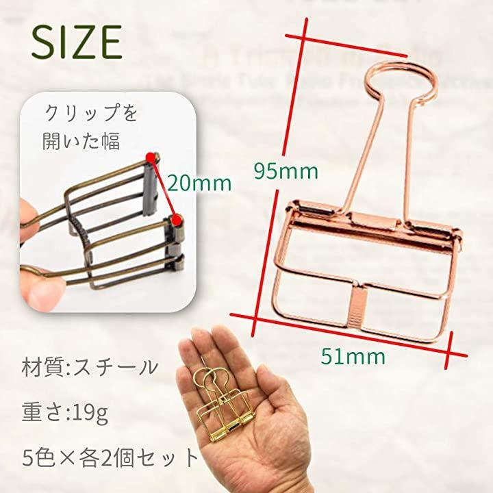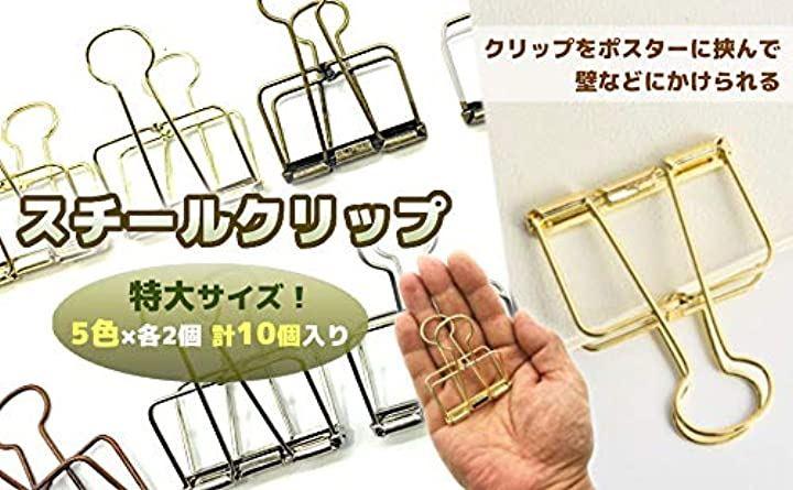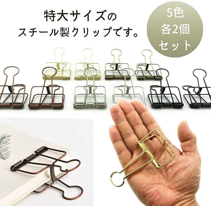 ・特大サイズのスチール製クリップ 5色x各2個セットです。
