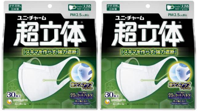 スタイル:快適◆商品名:超立体マスク風邪・花粉用不織布マスク日本製大きめサイズ30枚入ノーズフィットつき〔PM2.5対応日本製〕(99%ウィルス飛沫カットフィルタ)ユニチャーム立体マスク…2セット