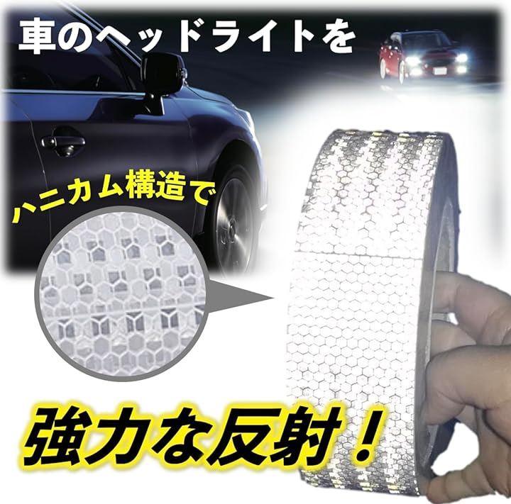 ・テープ表面はハニカム模様が入っており車のヘッドライトの光を強く反射します。