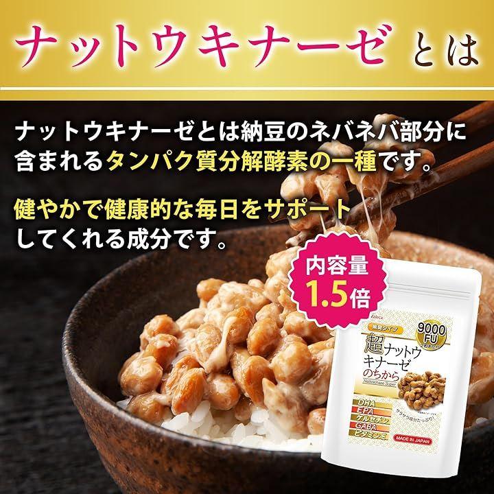 「1日納豆4パック分」サラサラ成分のナットウキナーゼを6000FU配合。健やかで健康的な毎日を応援します。