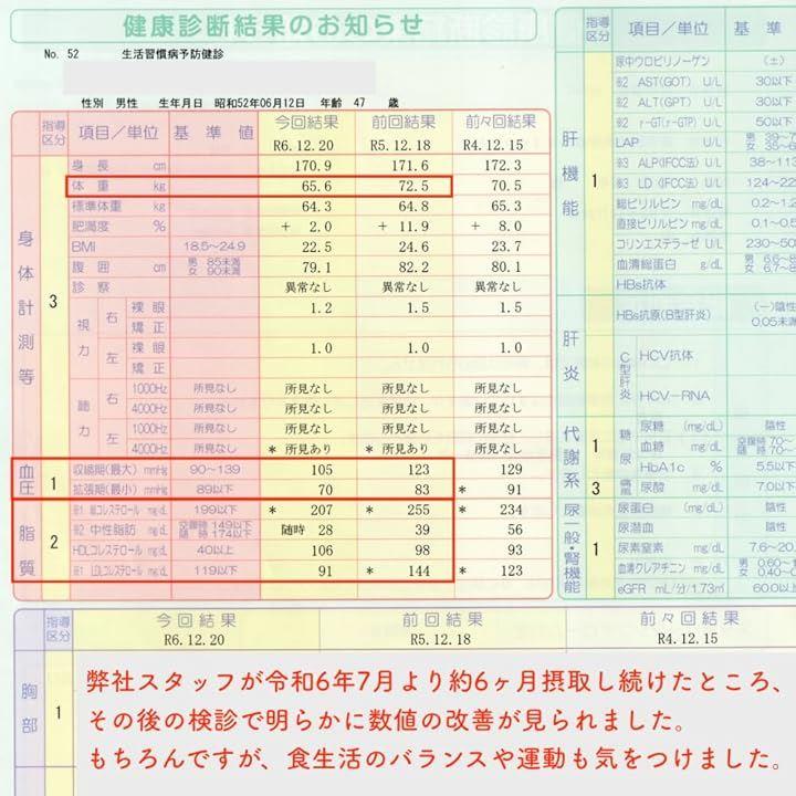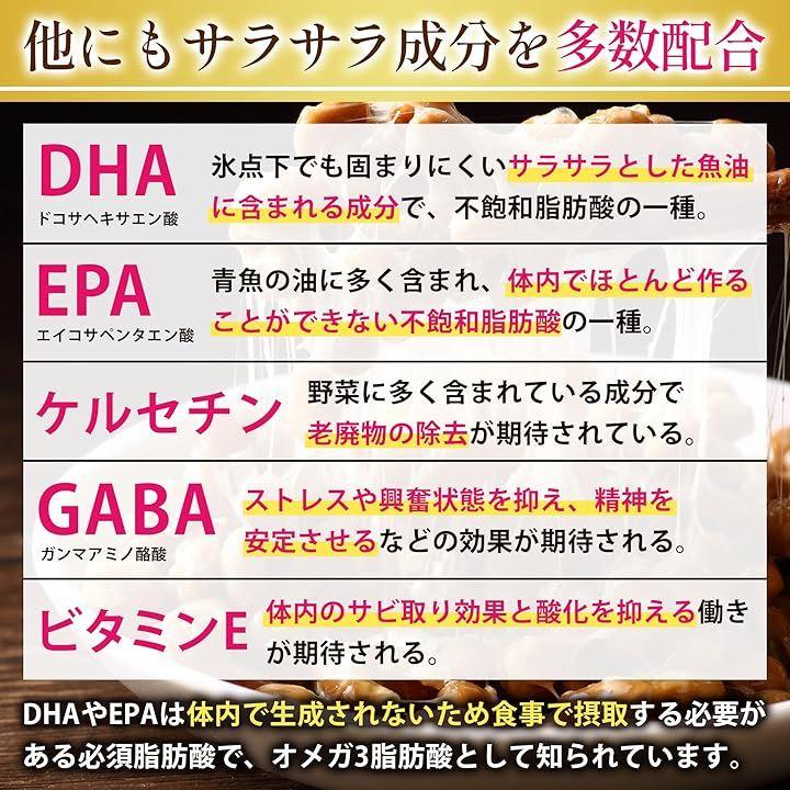 「DHA、EPAも摂れる」 サラサラにする働きもある、体に必須の脂肪酸(栄養素)であるオメガ系脂肪酸も配合。 さらにケルセチン、GABA、ビタミンEまで入っています。
