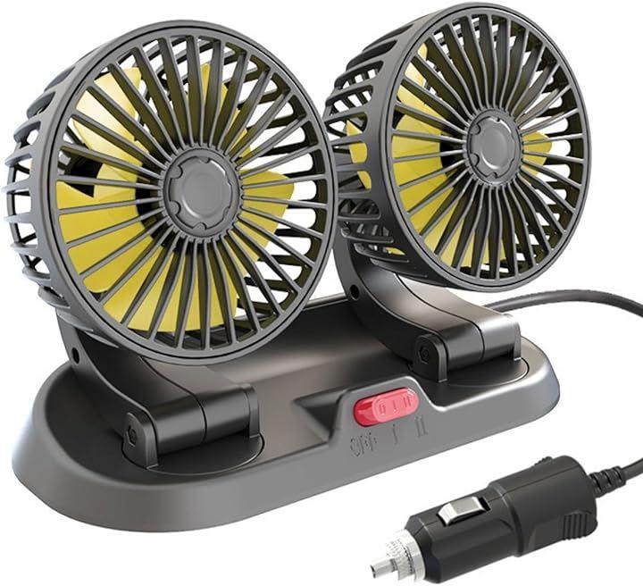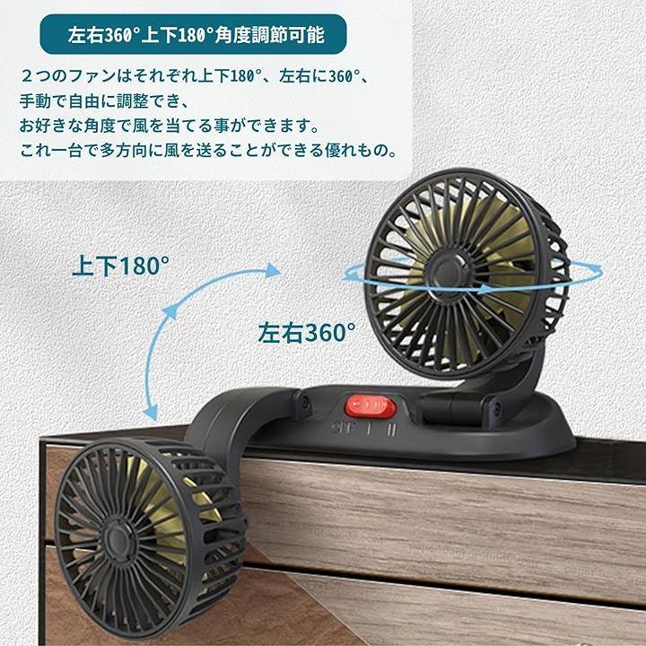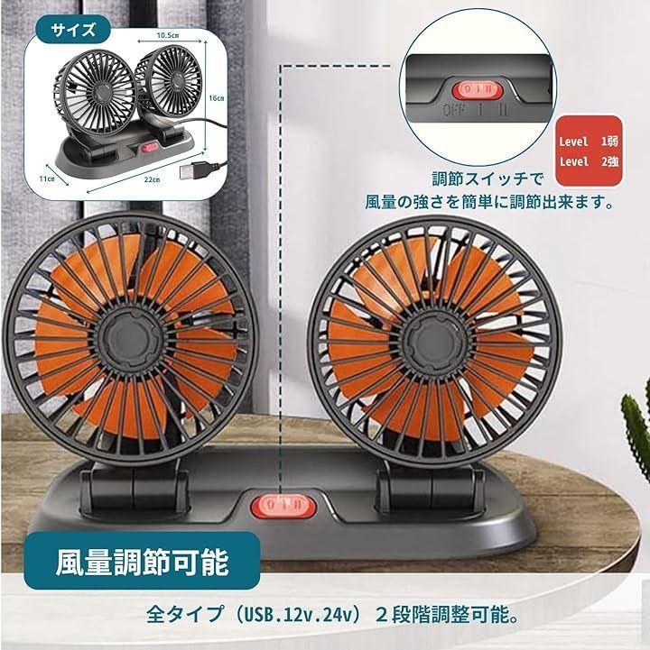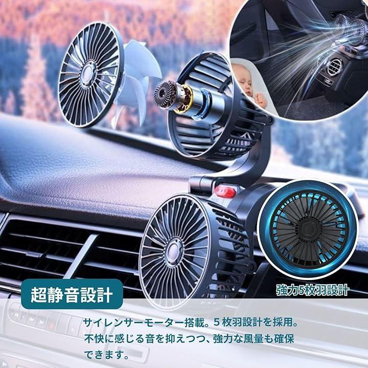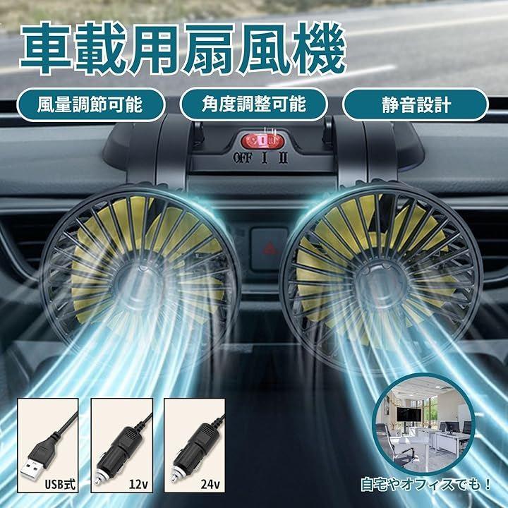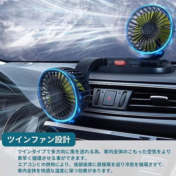 「車載ツインファン」車内の暑さ対策、熱中症対策、エアコン効率のアップに効果を発揮します。ツインタイプで多方向に風を送ることができ、車内全体のこもった空気を素早く循環させることが出来ます。