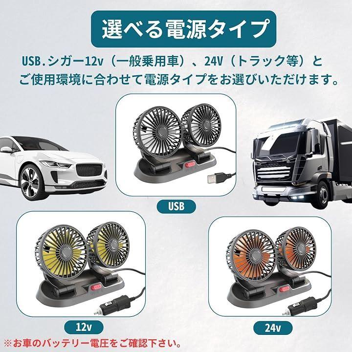 シガーソケット給電タイプ(12V.24V)とUSB給電タイプ(5V)があります。