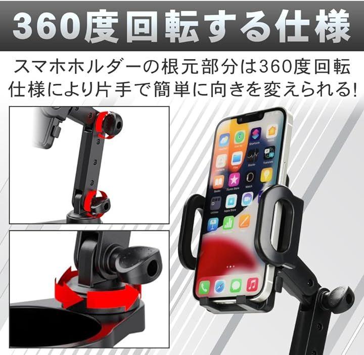 スマホホルダーの根元部分は360度回転する仕様により、片手で簡単に向きを変えられます。