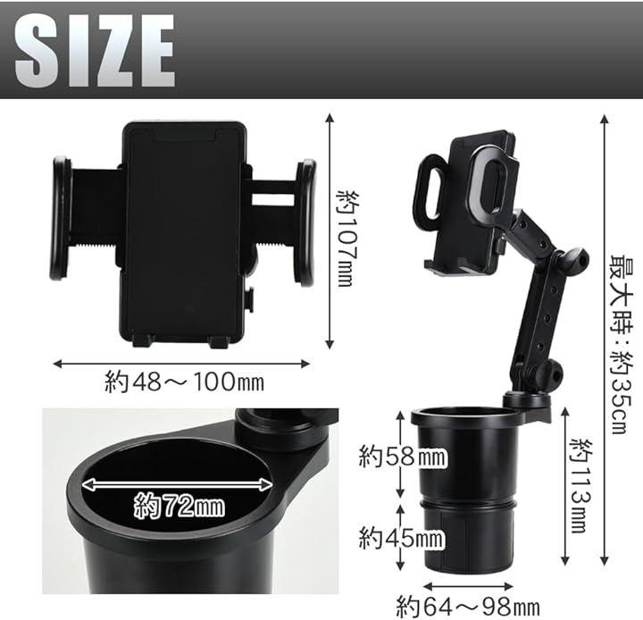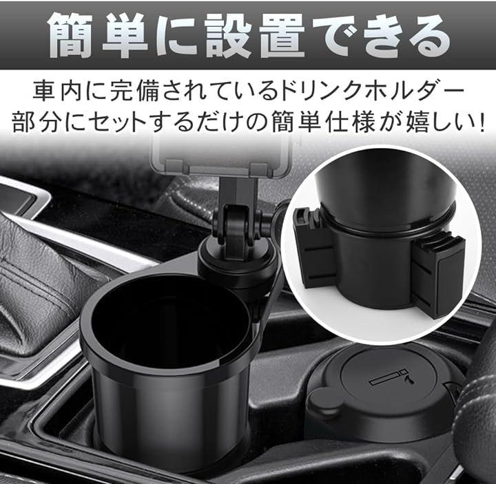 1台でドリンクカップやスマホスタンドの機能が備わったマルチホルダーです。