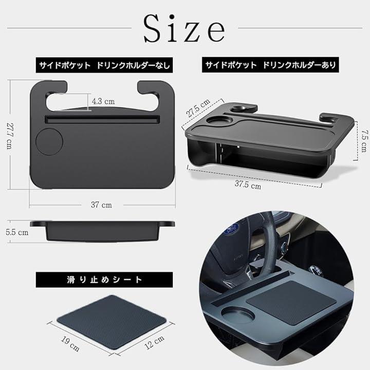 カップや書類が滑りにくくなる滑り止めシートも付属しており、傾斜のある座席でも安心して使用できます。