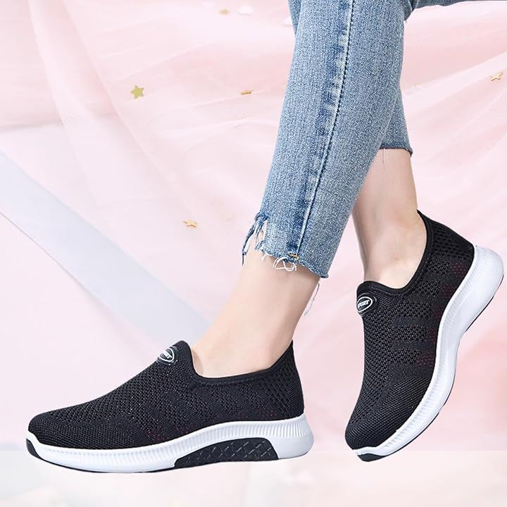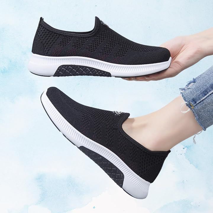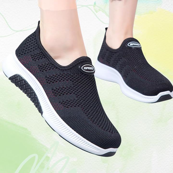通気性の高いニット調メッシュがムレを防ぎ、快適な履き心地をキープ。