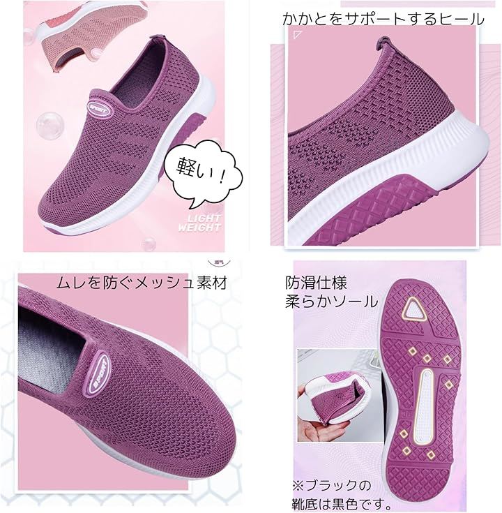 軽量で柔らかなメッシュ素材が足に優しくフィット。