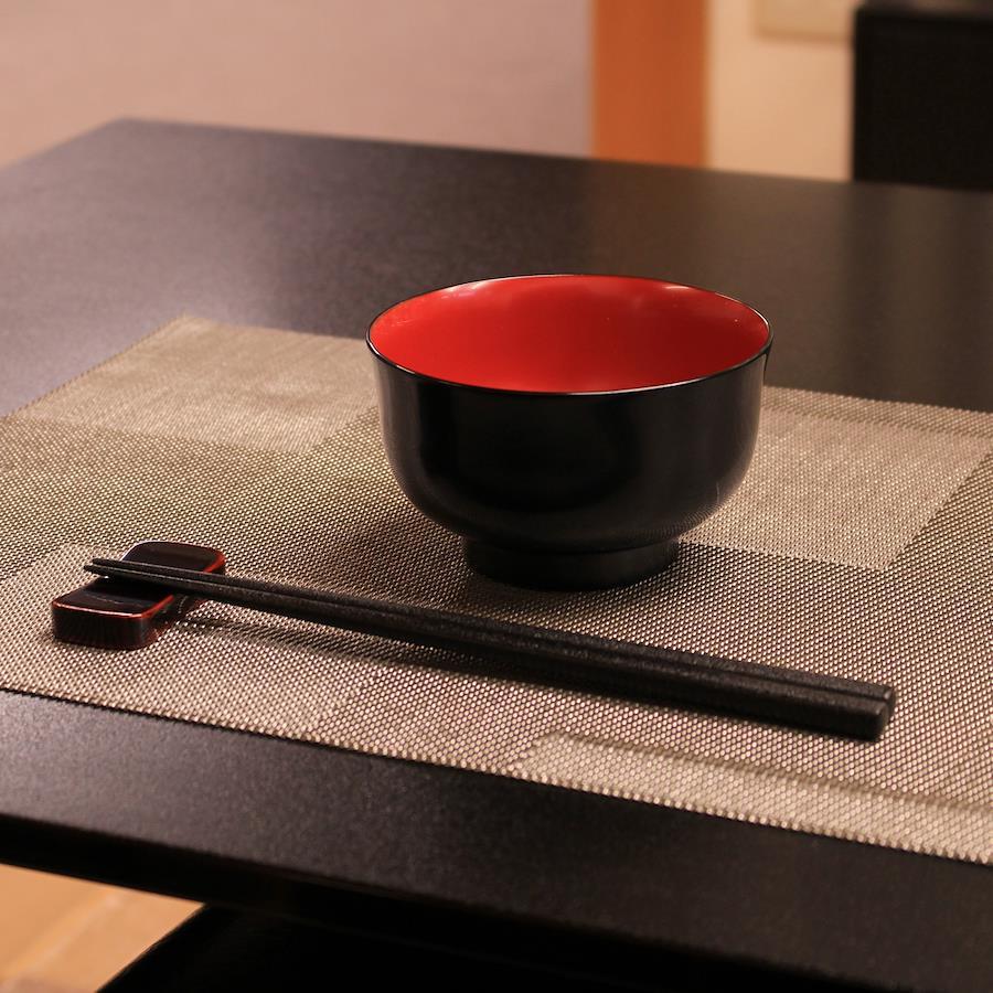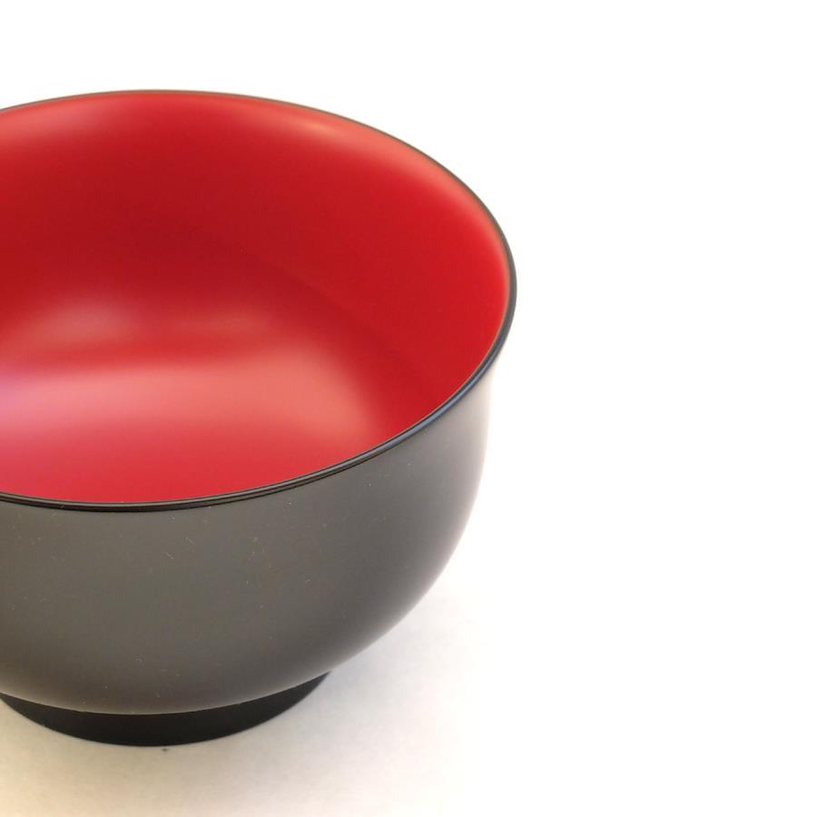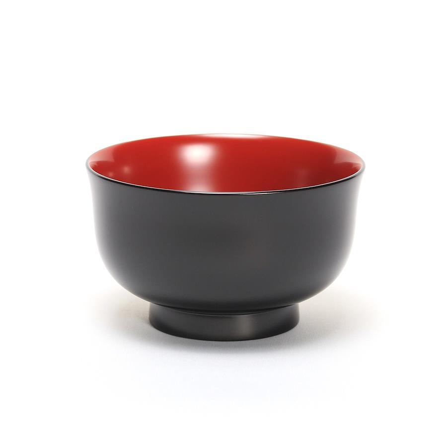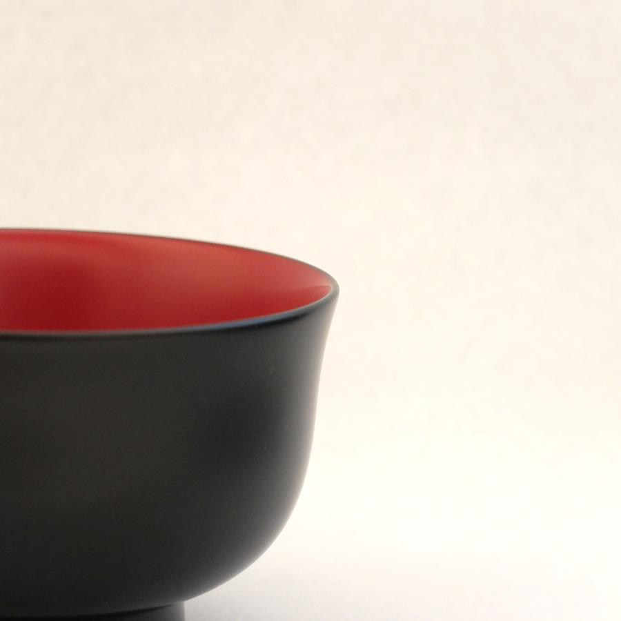 当社の最もベーシックな輪島塗の汁椀です。日常の器として親しみがあり、やさしい形と塗りを目指しました。一般的なものよりほんの少し小振りで、手に馴染みやすいお椀です。こちらは上縁が少し反った、口当たりのやわらかい端反のかたちです。