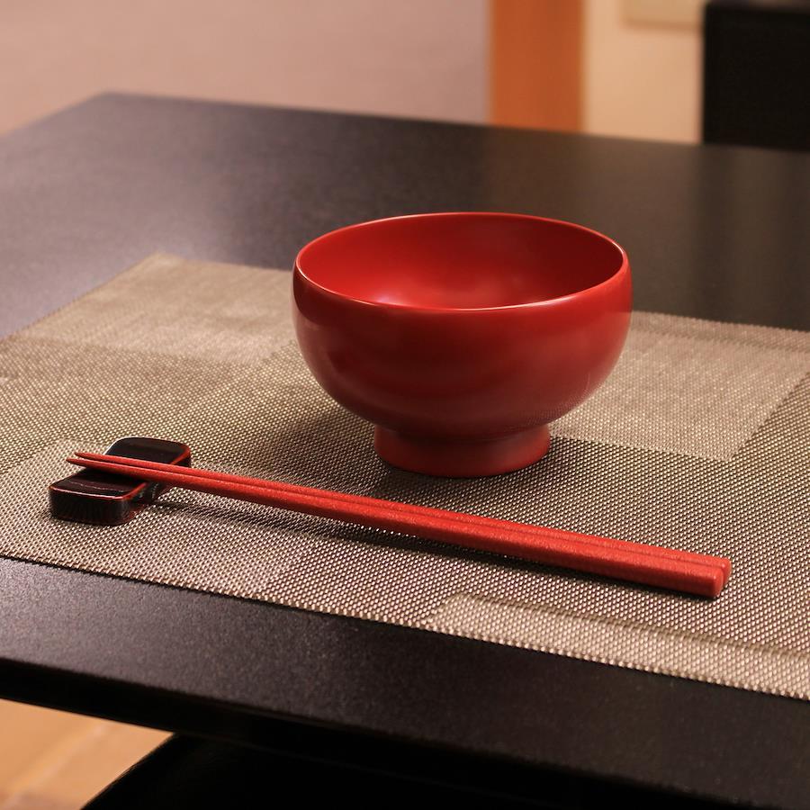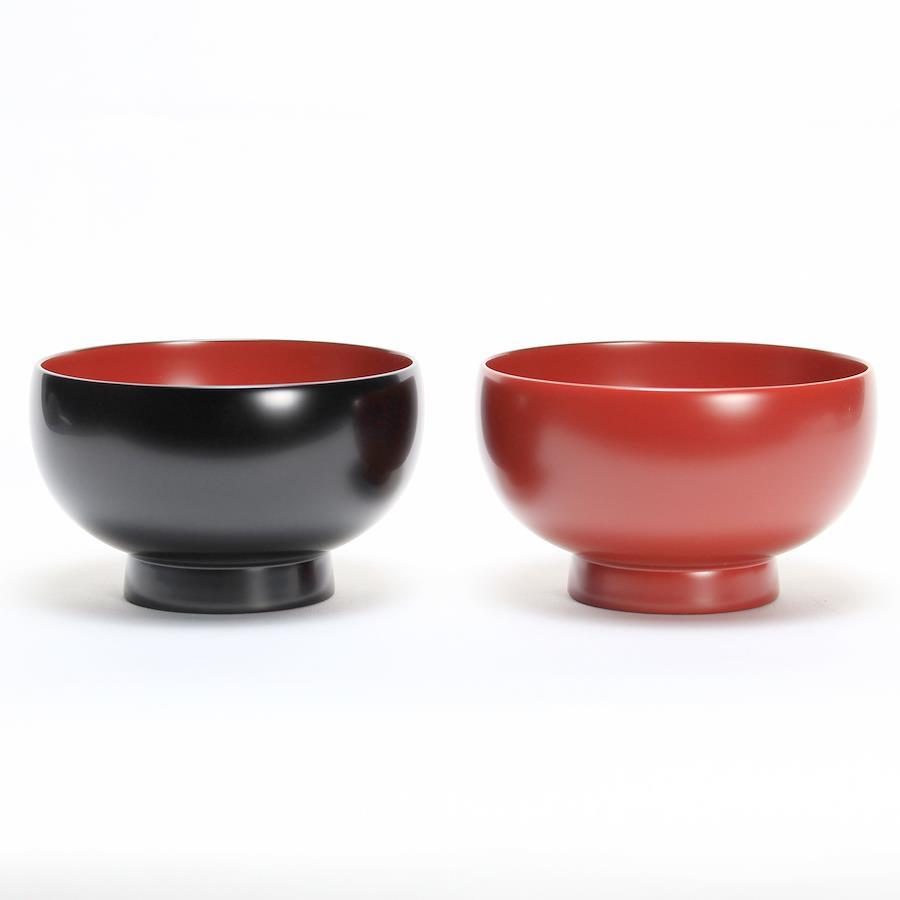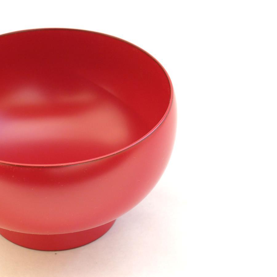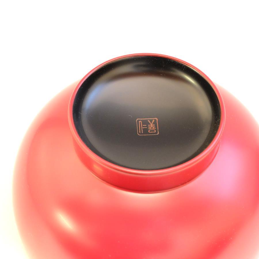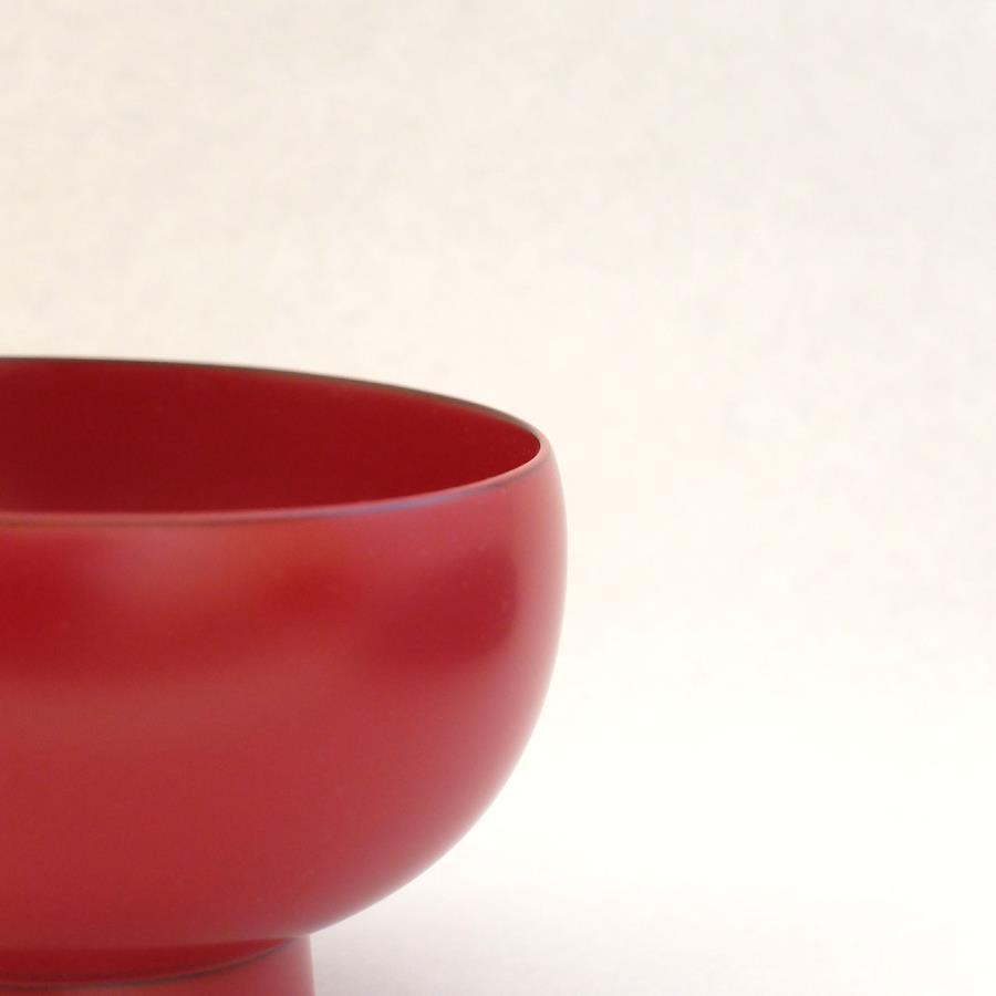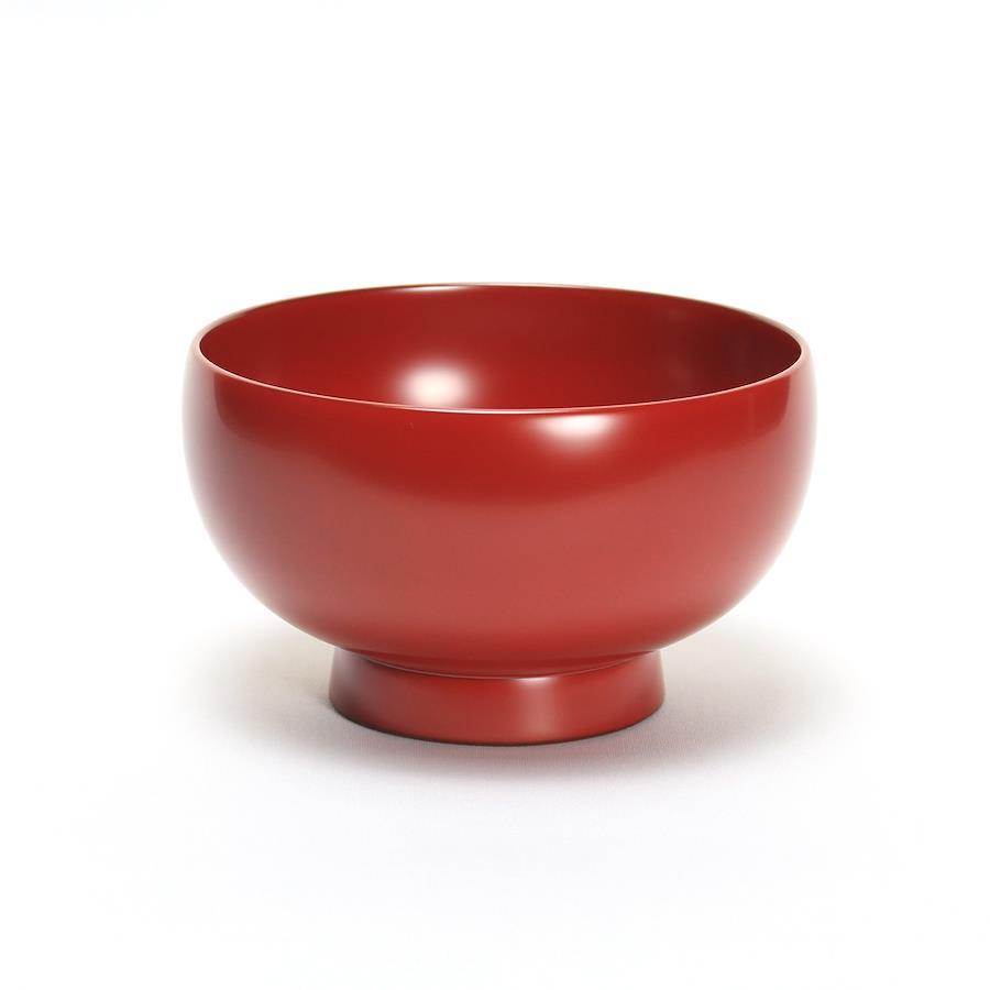 当社の最もベーシックな輪島塗の汁椀です。日常の器として親しみがあり、やさしい形と塗りを目指しました。一般的なのものよりほんの少し小振りで、手に馴染みやすいお椀です。こちらはこんもりと丸く手のひらに心地よい、胴が張った型です。