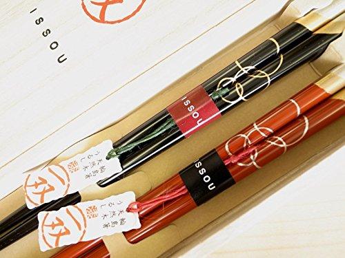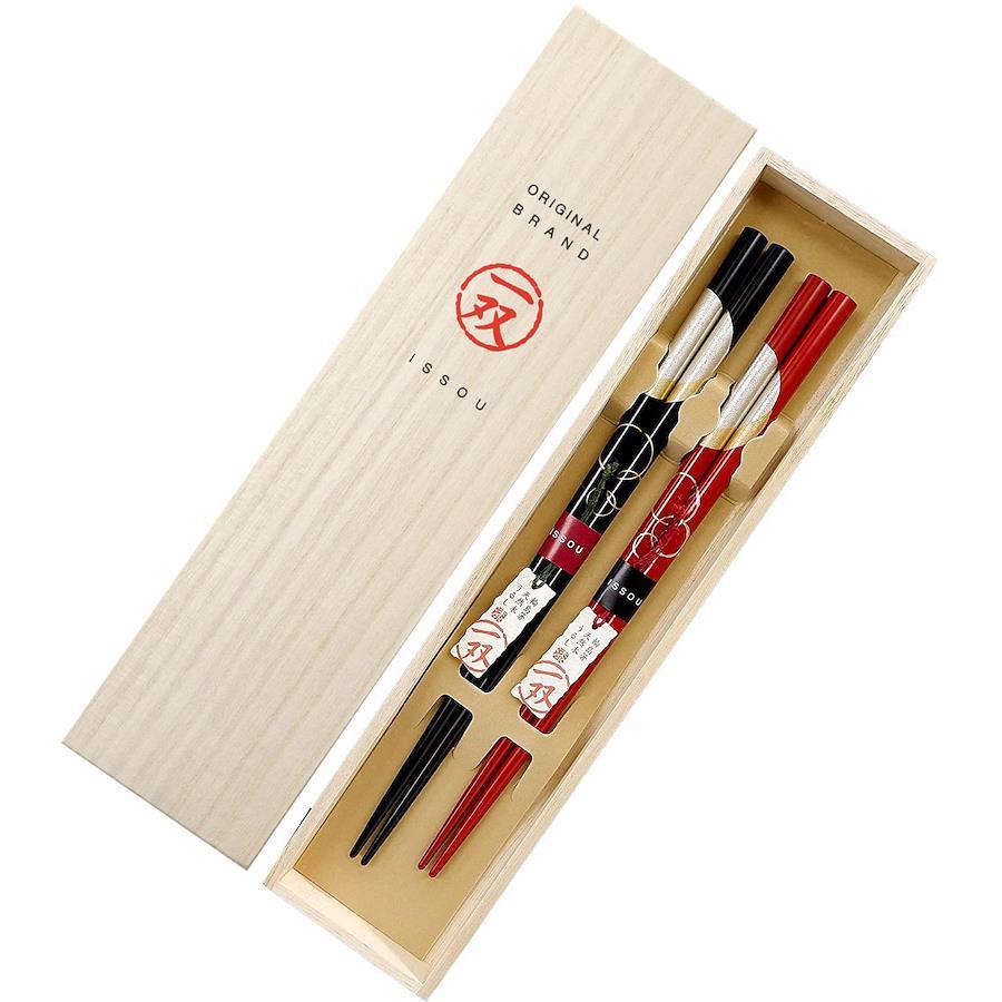 【ギフト包装】包装してお届けいたします。長さ:黒22.5cm 赤21.5cm持ち手の形状:四角 先の形:丸木地:天然木 塗装:漆桐箱入・夫婦箸
