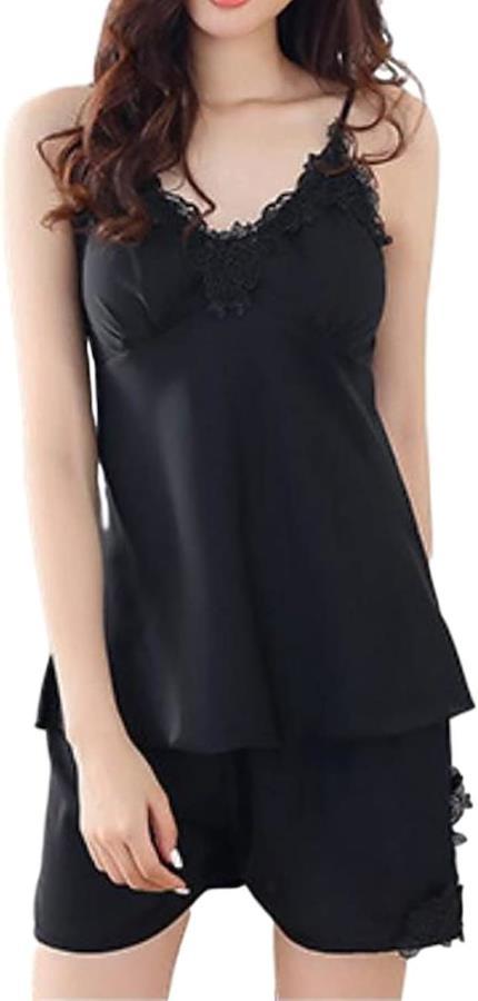 キャミソールのストラップは長さ調節可能、ショートパンツのウエストはゴム仕様。