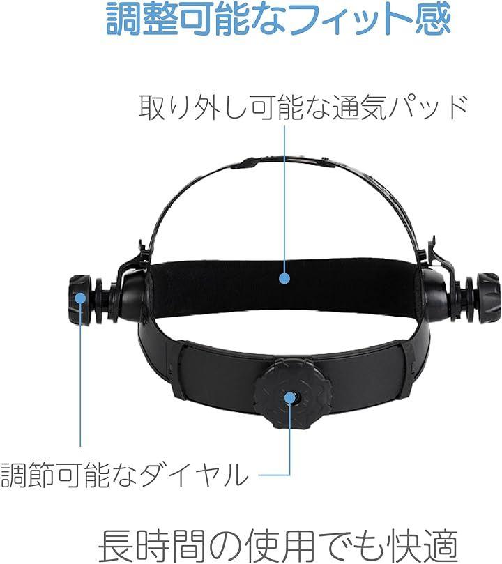 「調整可能なフィット感」 頭部ベルトは後部のつまみでサイズ調整が可能であり、額に当たる部分には取り外し可能な通気パッドが装備されています。