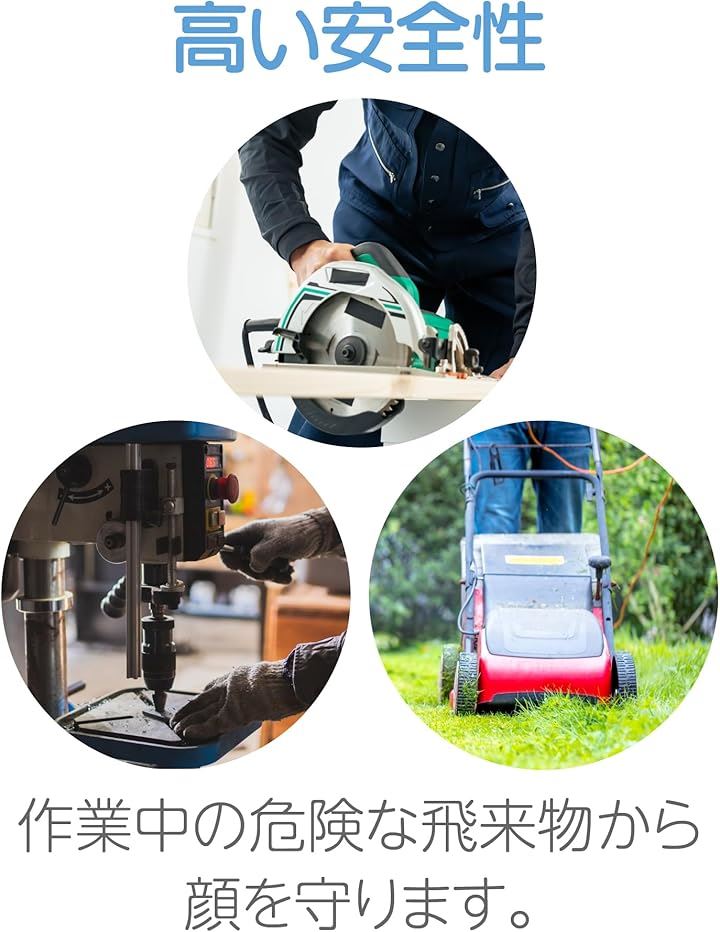 草刈り、研磨作業、塗料噴霧、切削作業など、様々な場面での使用が想定されています。