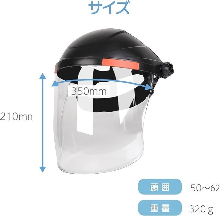 「広範囲の保護」 350mmの幅広い透明カバーが、顔の正面だけでなく側面もしっかりとカバーし、全面的な保護を提供します。