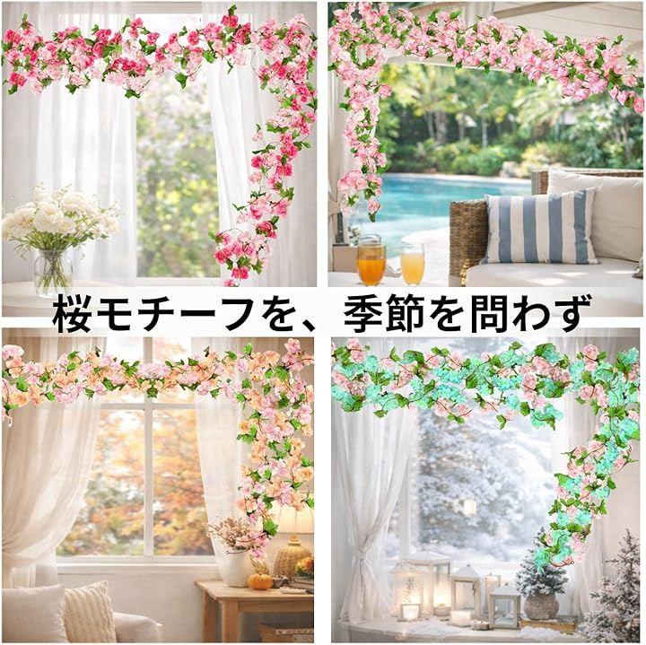 桜モチーフの吊り下げフェイクフラワー、季節を問わず使える装飾アイテム:桜をモチーフにした吊り下げタイプのフェイクフラワーガーランドです。