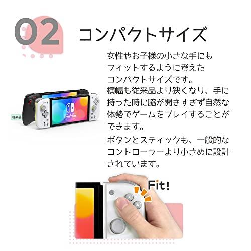 ● Nintendo Switch?の携帯モード専用のコントローラーです。● 「グリップコントローラー Fit for Nintendo Switch」は、「グリップコントローラー for Nintendo Switch」がもう少し小さかったらいいのにな、というお客様の声から生まれた製品です。● キュートなツートーンカラーの「LIGHT GRAY×YELLOW」と「MINT GREEN×WHITE」、シックなカラーの「MIDNIGHT BLUE」と「APRICOT RED」の4色をラインナップしました。● 背面ボタン + 割り当て機能L / R側コントローラーそれぞれに背面ボタンを搭載。アサイン(ボタン割り当て)機能でお好みのボタン機能を割り当てることで、ゲーム中の複雑な操作をサポートします。・背面ボタン+割り当て機能 設定可能ボタンL側 : Lボタン / ZLボタン / Lスティックボタン / 十字ボタン(上下左右) / -ボタンR側 : Rボタン / ZRボタン / Rスティックボタン / Aボタン / Bボタン / Xボタン / Yボタン / +ボタン● 連射 / 連射ホールド機能ボタンを押している間、連射できる連射機能とボタンを押し続けなくても連射できる連射ホールド機能を搭載。3段階に連射速度を切り替えできます。