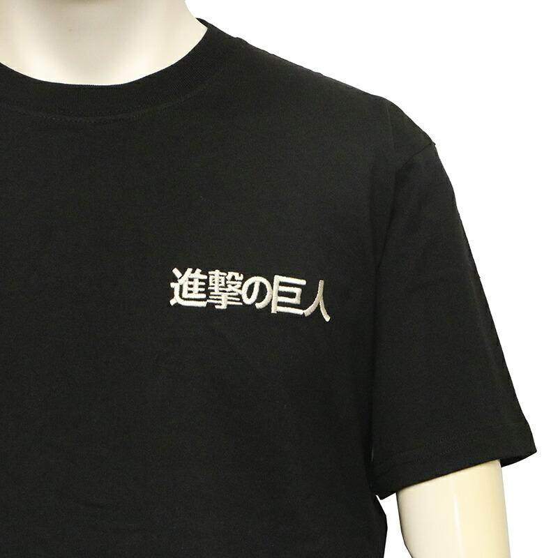 フロントは左胸に進撃の巨人 ロゴを刺繍で配置。
