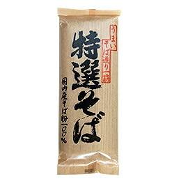 遁所食品 特選そば 200gは、国内産そば粉を100%使用した手打ち風そばです。つなぎは全く使用していません。特殊製粉により、麺にボソボソ感が残りません。召し上がり方・使い方: ○多めの充分沸騰したお湯へそばをぱらぱらと入れ、吹きこぼれないように注意して5~6分茹でてください。 ○でき上がりましたら、手早く流水で冷やし、ざるなどに入れ、水気を切ってください。