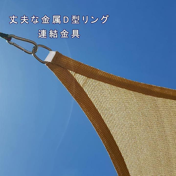 「D型リング連結金具」耐久性に優れ厚手の高密度なポリエチレンを使用した日よけシェードです。