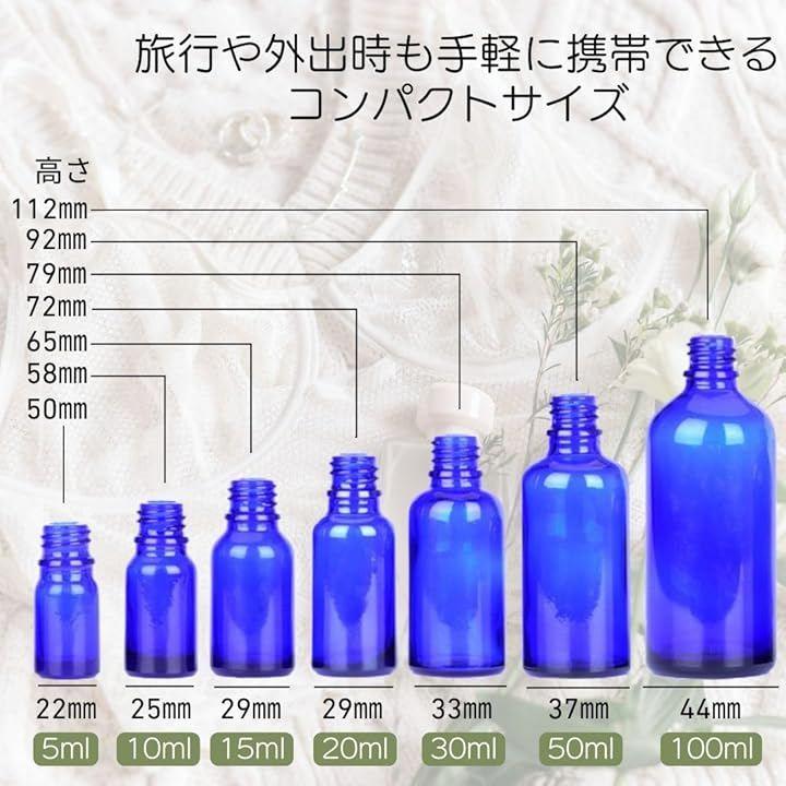 「セット内容」本体20本、漏斗5個 「容量」5ml/10ml/15ml/20ml/30ml/50ml/100ml 「カラー」ブラウン/ブルー