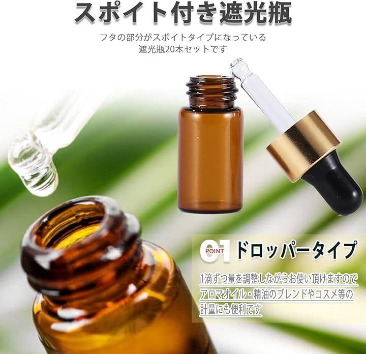 「スポイト付き遮光瓶」フタの部分がスポイト(ドロッパー)タイプになっている遮光瓶20本セットです。