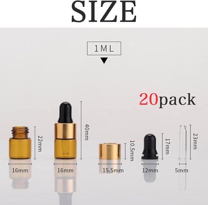 「商品内容」スポイト遮光瓶:20本 容量:1ml カラー:ブラウン <サイズ>全長:40mm(瓶高:22mm、キャップ部分:17mm) ボトル直径:15.5mm 重量:4.8g / 個 材質:ガラス、シリコンゴム、PP *仕入れ状況や製造工場の都合により、一部仕様変更がある場合がございます。