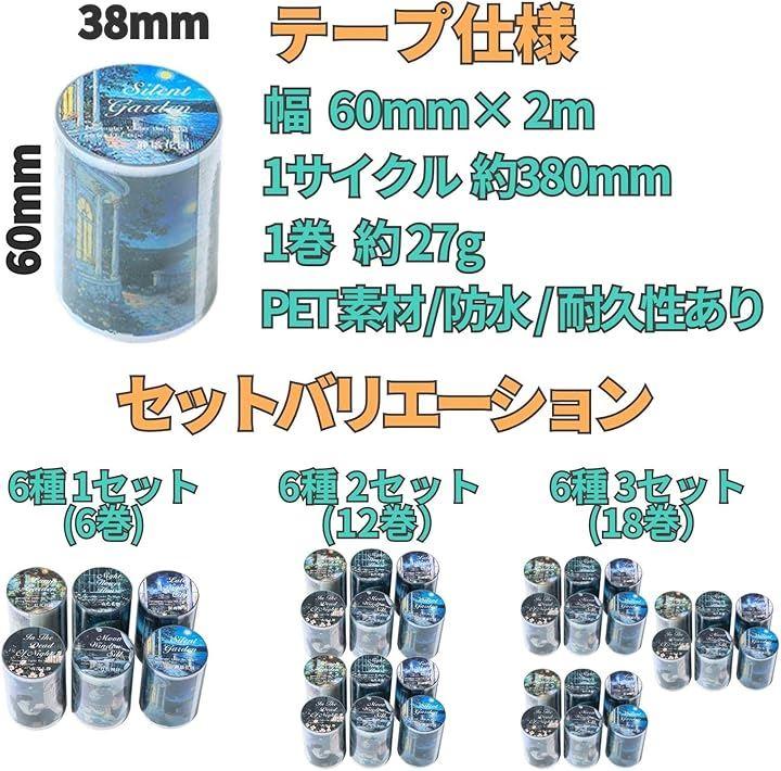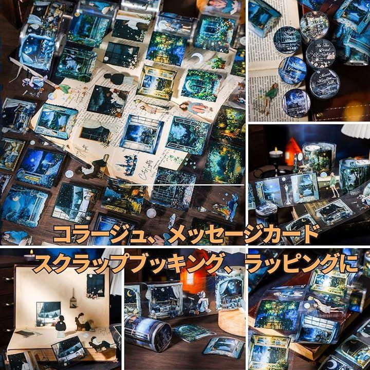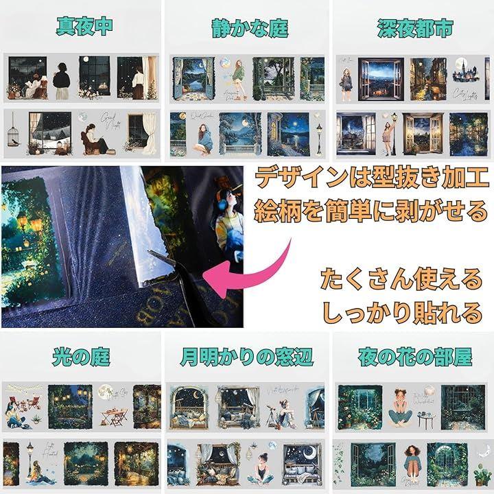「仕様」1セット6種(6ロール) 型抜きタイプ [真夜中(夜深人静)] [静かな庭(静谧花园)] [深夜都市(深夜都市)] [光の庭(灯火花园)] [月明かりの窓辺(月明窗台)] [夜の花の部屋(夜色花房)]
