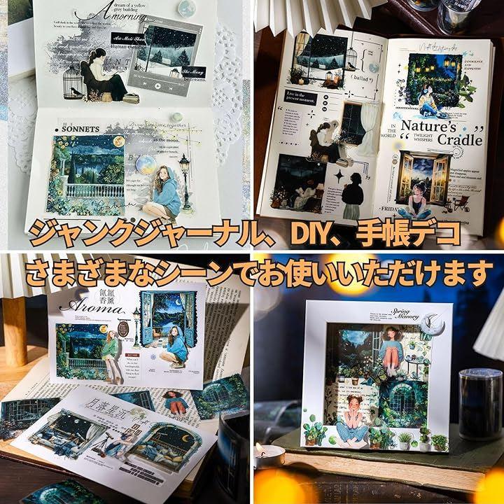 物語を感じさせる繊細なイラストは、コラージュや手帳デコ、アルバム作り、手帳、ノート、DIY、透明なボトルなど多用途に最適。