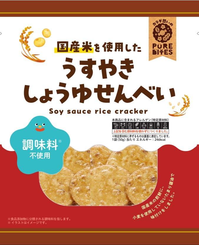 酒田米菓 PURE BITES(ピュアバイツ) 国産米を使用したうすやきしょうゆせんべい 50g×6袋