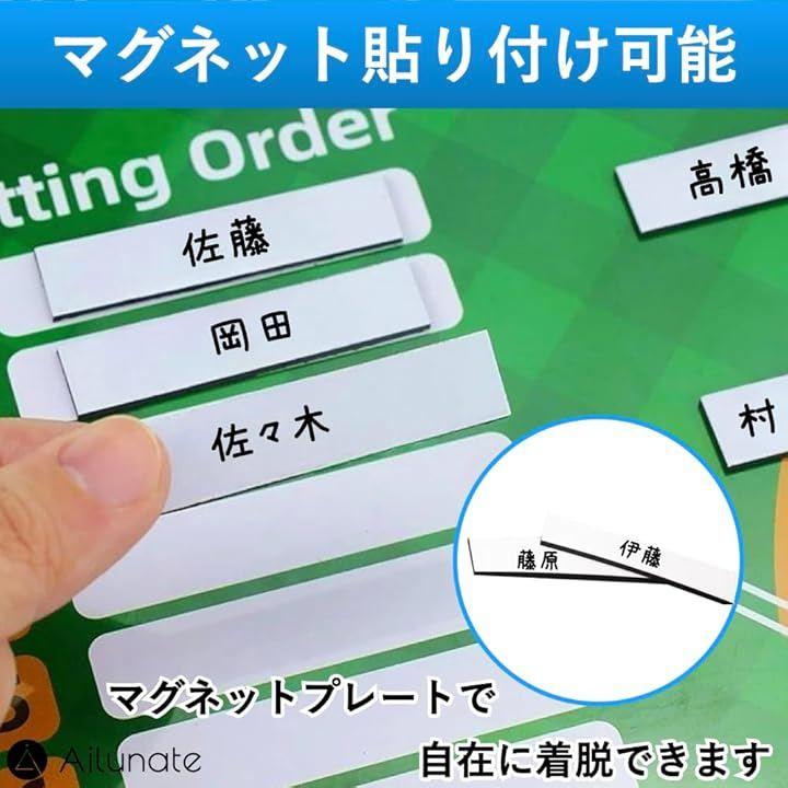 「マグネットプレートが貼り付く」付属のマグネットプレートを使い、コーチや監督から先発投手やスタメン、控え選手、対戦相手の選手、ポジションを説明できます。