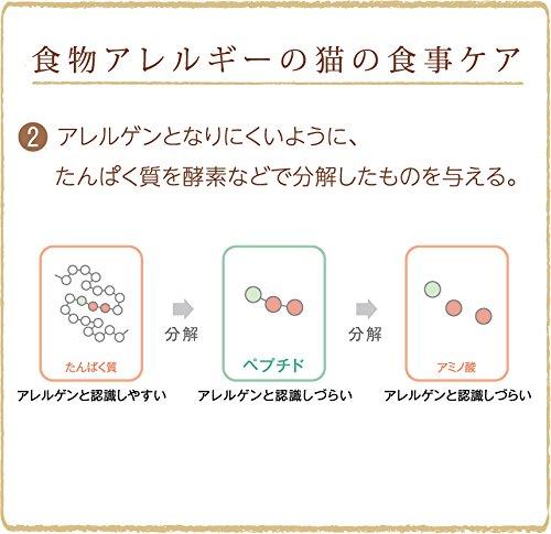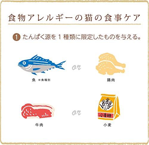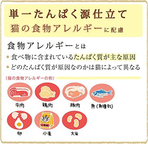 猫の食物アレルギーに配慮して、ささみの単一たんぱく源仕立て。さらに旨味成分もアレルゲンとなりにくいようにペプチド処理をして配合。