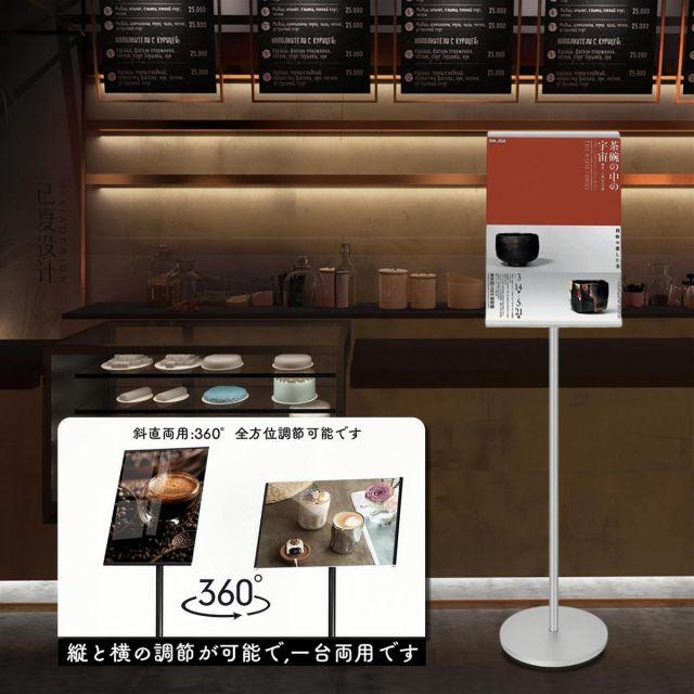 サイズ:A3◆商品名:立て看板、A3案内板、サインスタンド、アルミ合金製スタンドサイン、ウェルカムボード、A3重い案内板スタンドボード会社の情報板お知らせボード受付イベントの案内板掲示板角度調節可能な立て看板エントランスお店の看板メニュースタンド(銀)