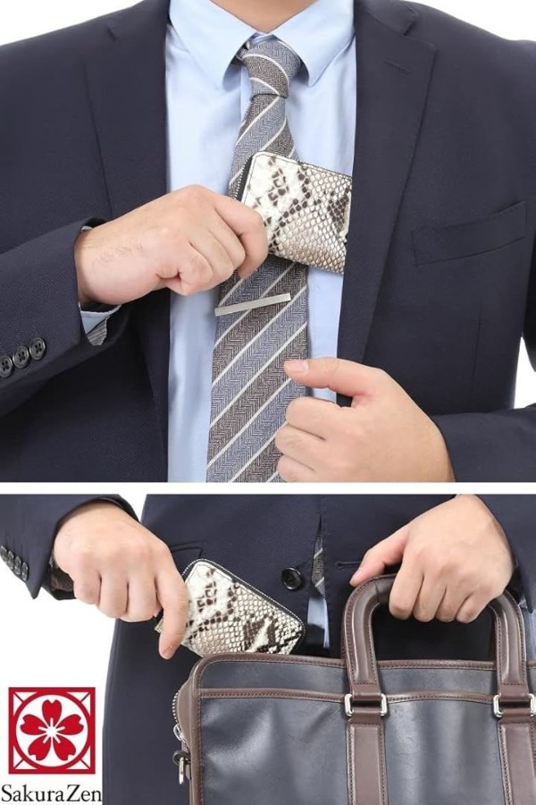 蛇の由来を利用した商品で PUレザー、フェイクレザー、合皮 (人工皮革)、牛革に蛇の型押しをしただけの商品とは一線を画した金運アップを狙った本革金運財布となっています。