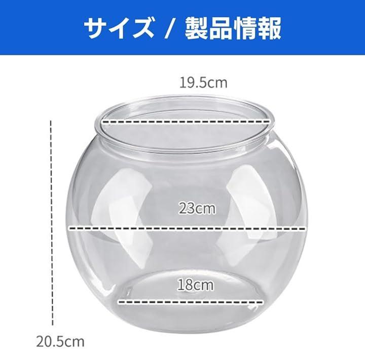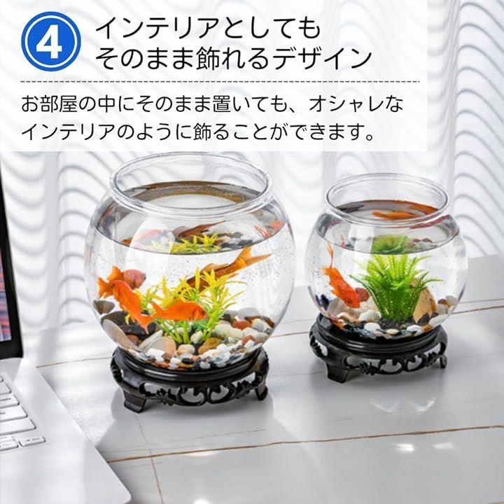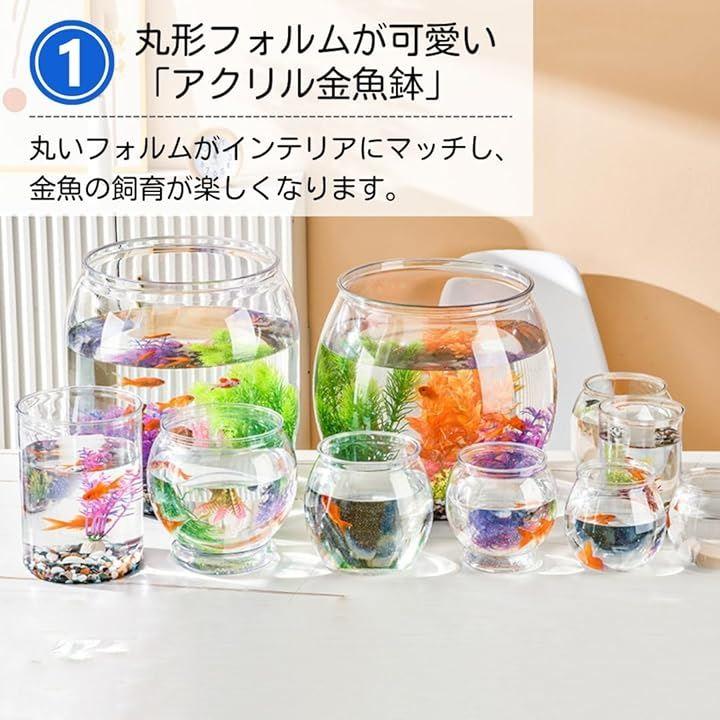 「水槽内の金魚が綺麗に見えるアクリル製の金魚鉢」透明なアクリル製で、金魚の美しさを引き立てるデザインです。