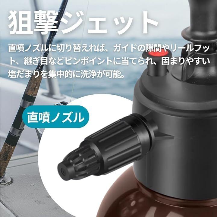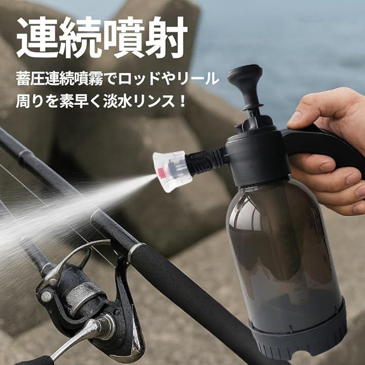 「連続噴射」蓄圧連続噴霧でロッドやリール座周りを素早く淡水リンス。