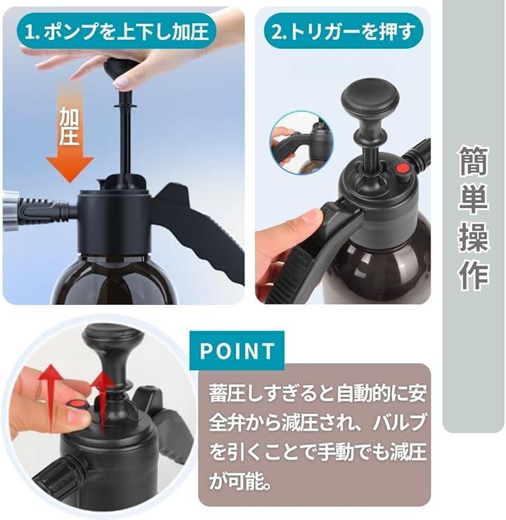 「商品内容」パッケージ内容:噴霧器本体x1、防風ノズルx1、直噴ノズルx1。