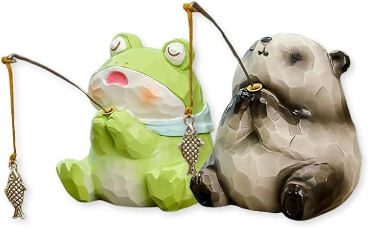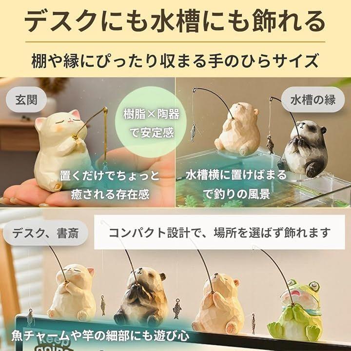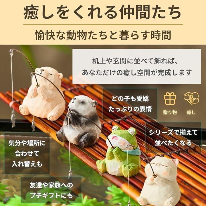 「癒しと遊び心を兼ね備えた釣りの置物セット」 動物たちが並んで釣りを楽しむ姿をモチーフにした、ユーモラスで癒しのあるインテリア置物です。