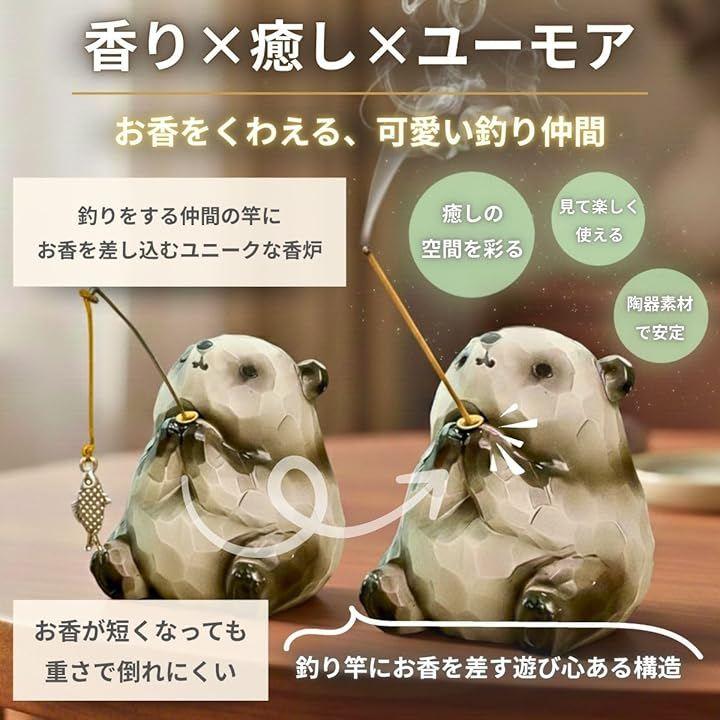 手にした釣り竿は取り外しが可能で、お香を立てて香炉としても使用できます。