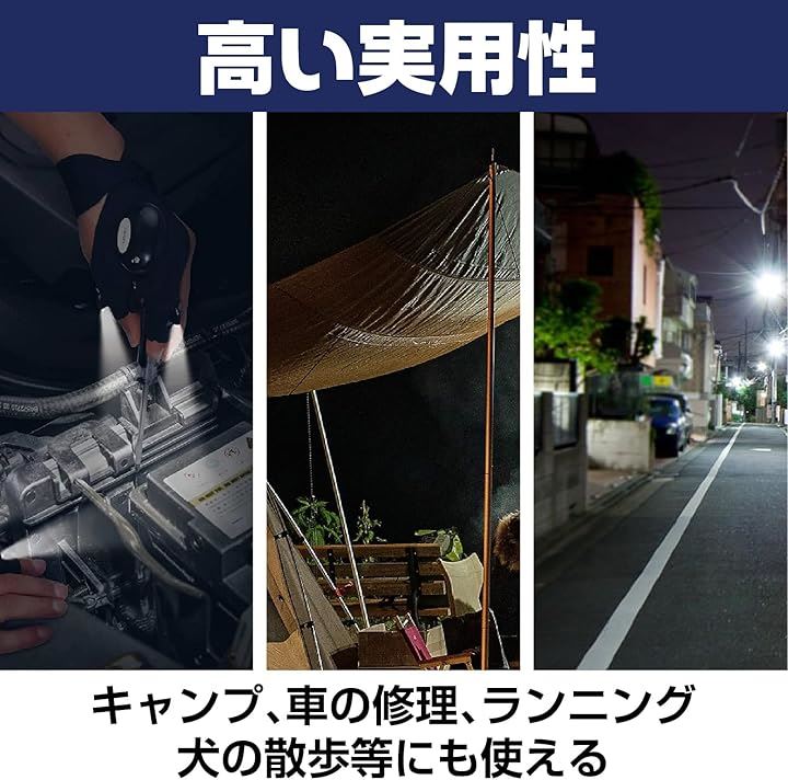 その他のアウトドア活動に十分な明るさのLED手袋ランプ