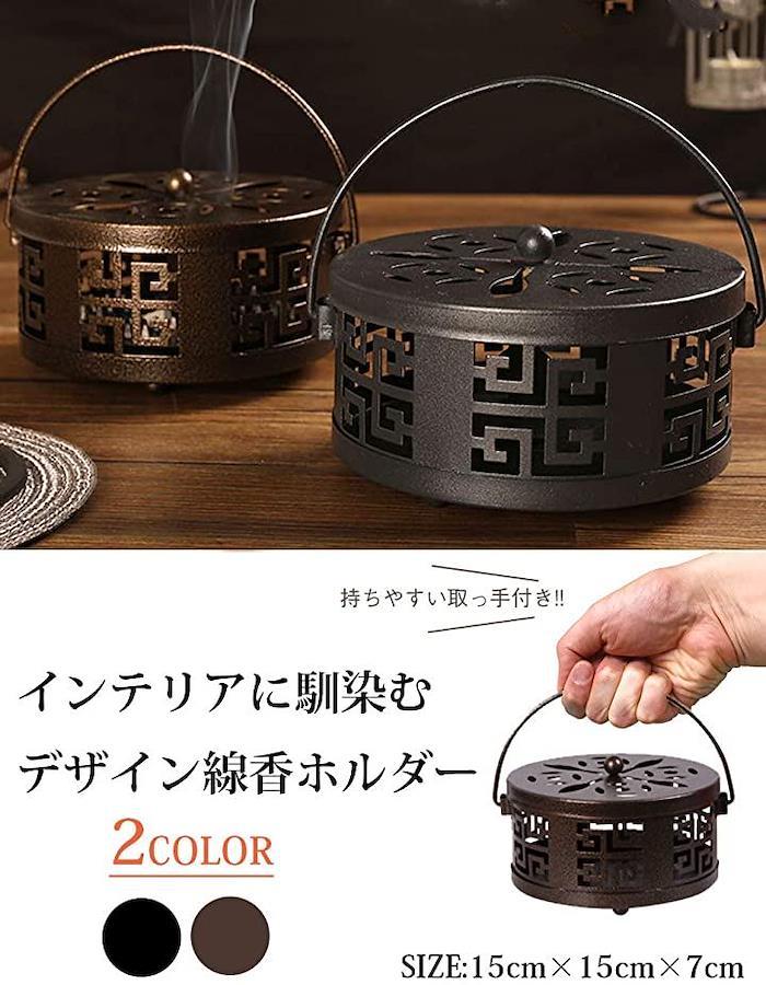 ・*鉄製でどっしりした重さがあり、蓋と取っ手付きのオシャレな蚊取り線香ホルダー。