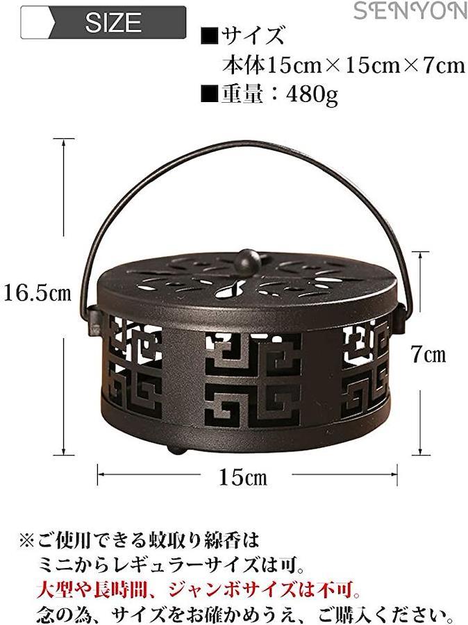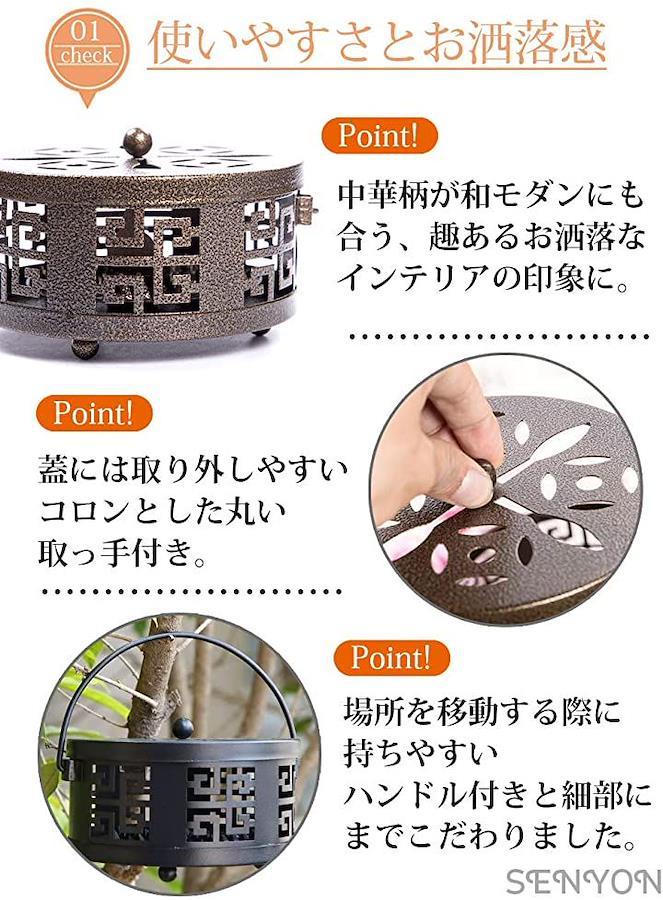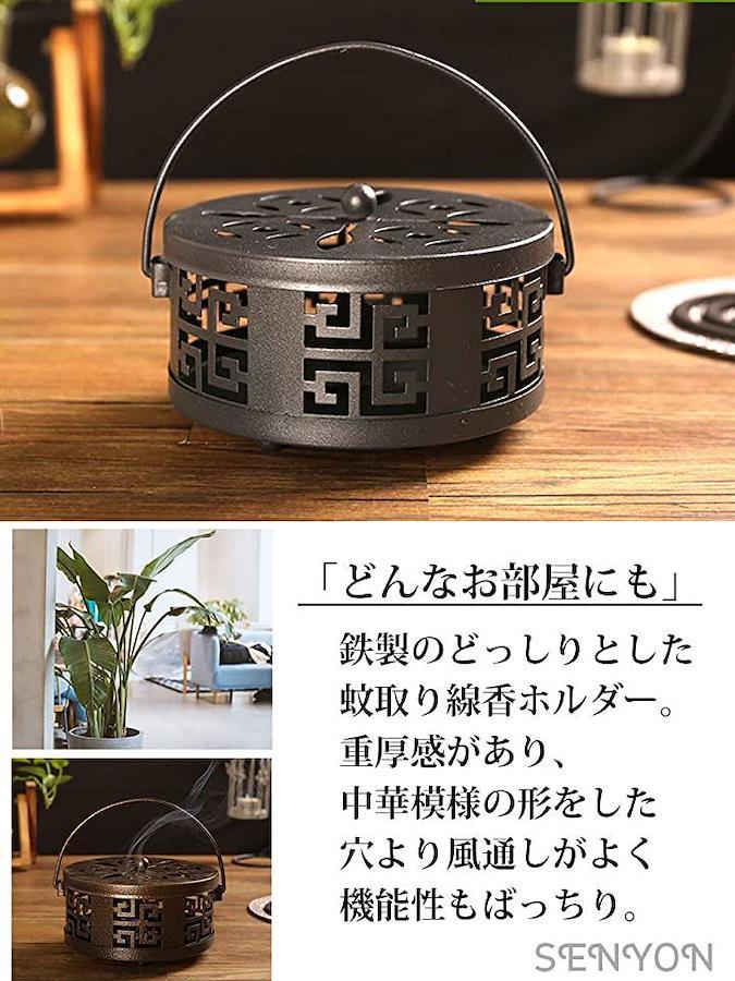 [SENYON]鉄製蚊取り線香ホルダー中華模様取っ手付き蚊やり