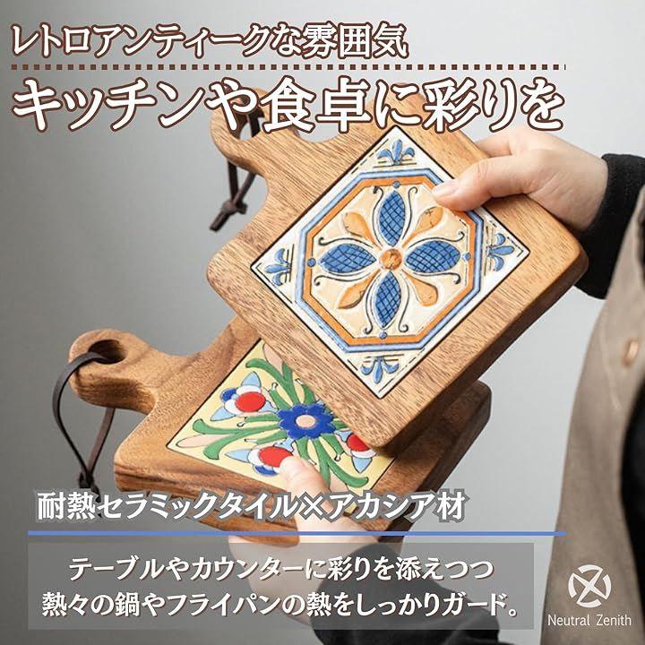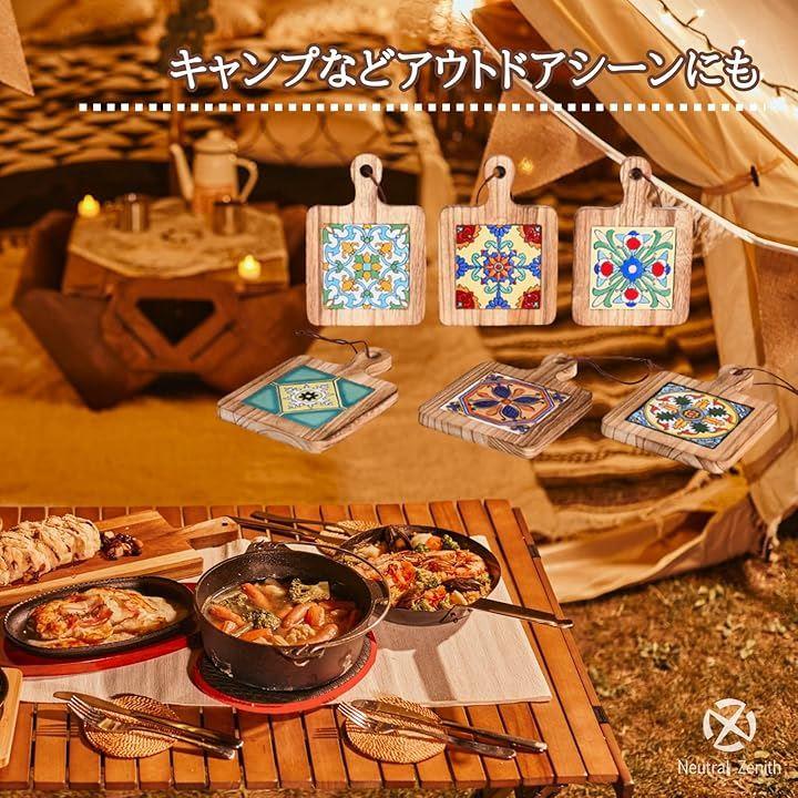 「優れた耐熱性」耐熱セラミックタイルが高温の鍋やフライパンを安全に受け止め、テーブルやカウンターを効果的に保護します。
