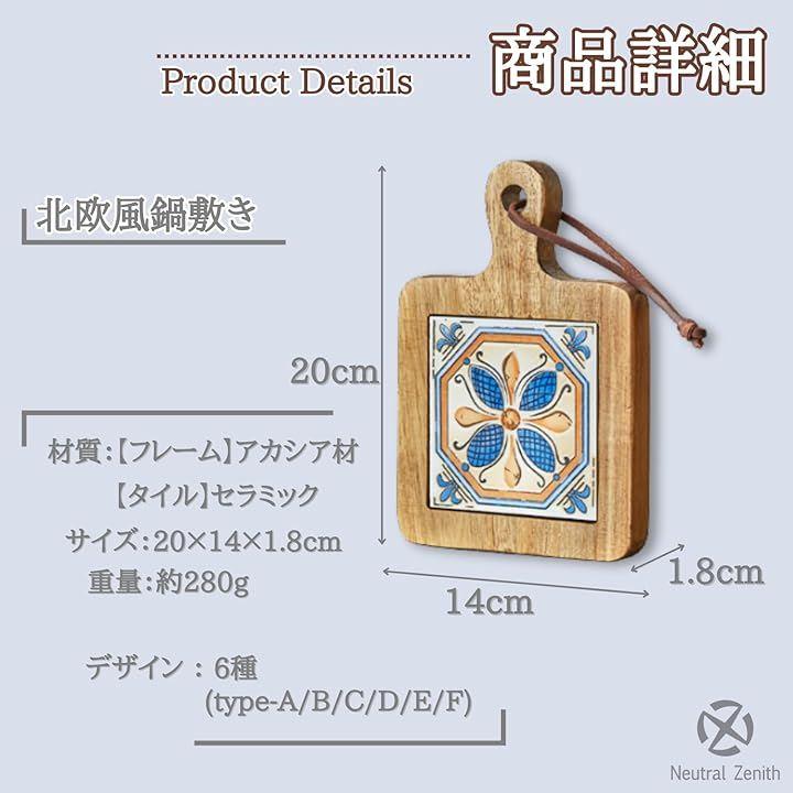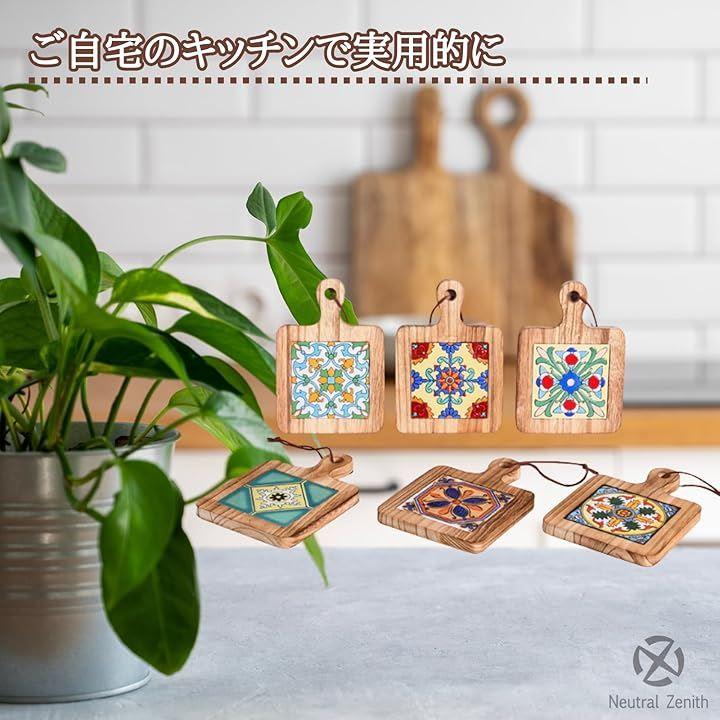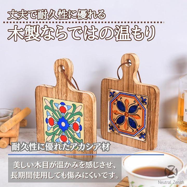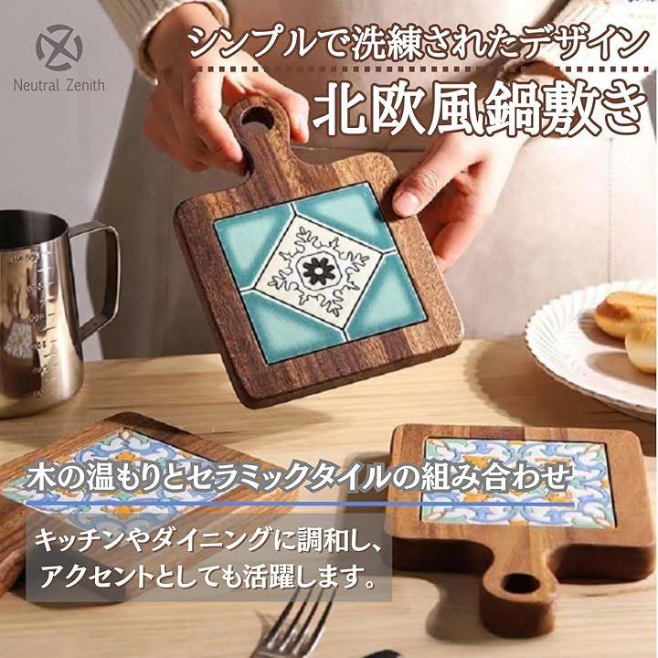 「北欧風鍋敷き」木の温もりとセラミックタイルの組み合わせが、シンプルで洗練された北欧風デザインを実現。