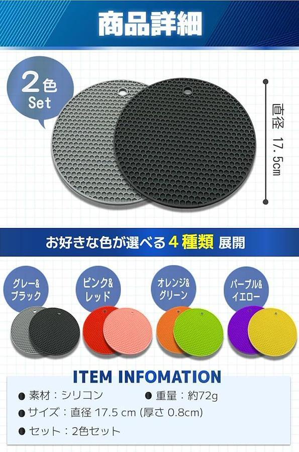 「商品詳細」素材:シリコン重量:約72g/サイズ:直径 17.5 cm (厚さ 0.8cm)/セット:2色セット/