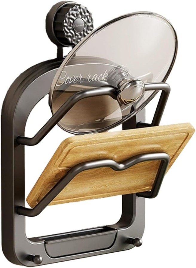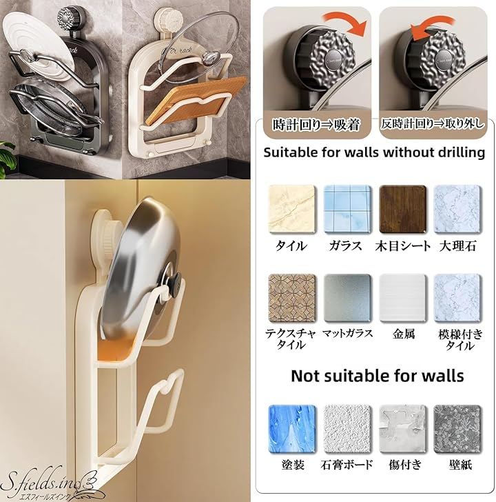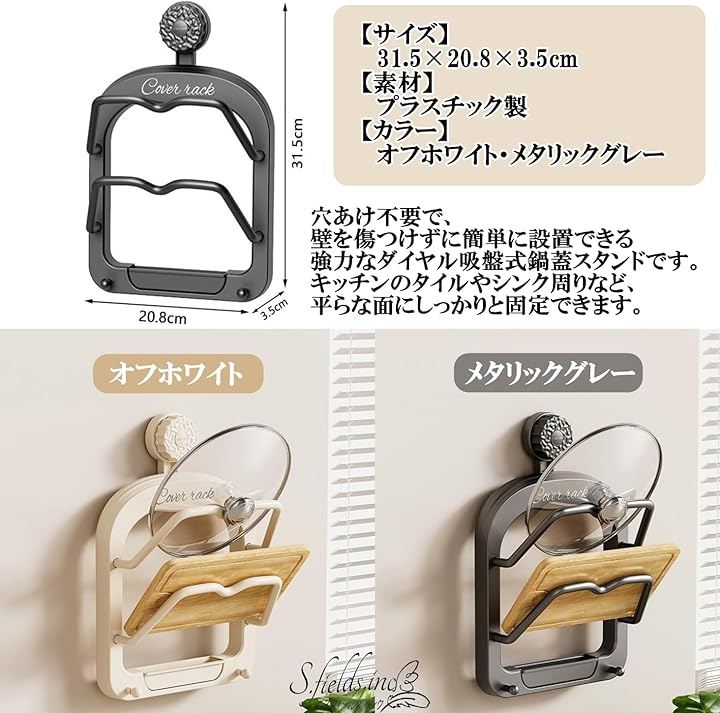 穴あけ不要で、壁を傷つけずに簡単に設置できる強力なダイヤル吸盤式の鍋蓋スタンドです。
