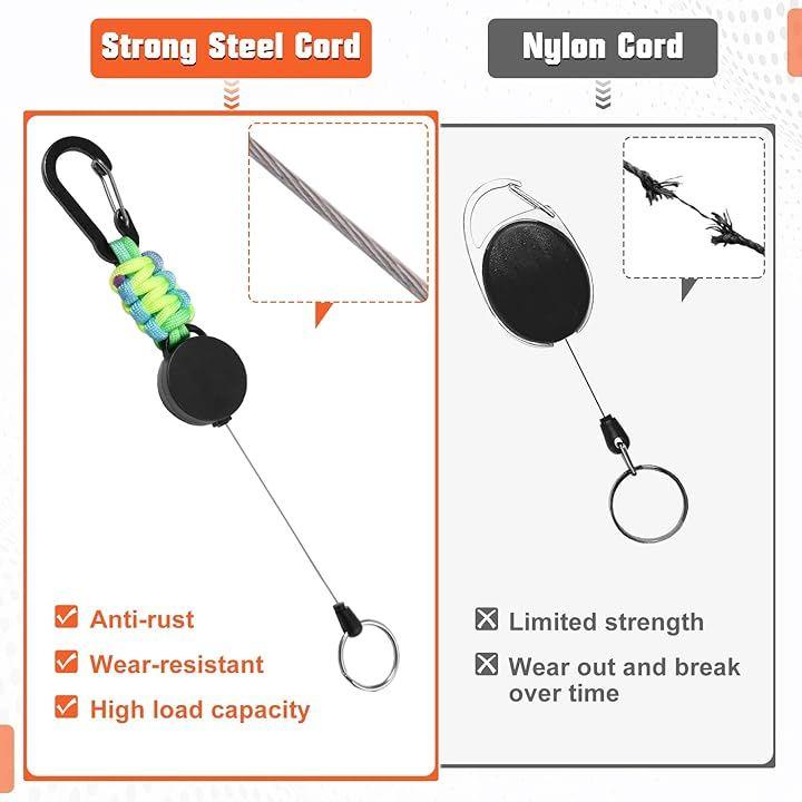 素材:軽量でありながら頑丈なABSハウジング、耐撕裂性の織パラシュートコード、耐錆性のあるPVCコーティングスチールコードと信頼性のある強度で作られており、この伸縮式キーホルダーはアウトドアアドベンチャーに不可欠なアクセサリーとなります。