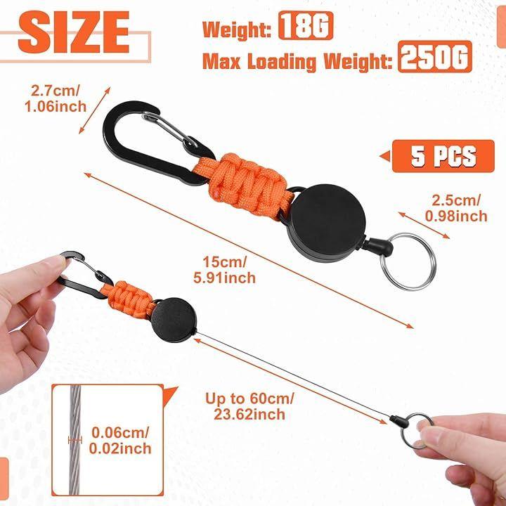 パッケージ内容:ヘビーデューティ伸縮式キーホルダー5個。