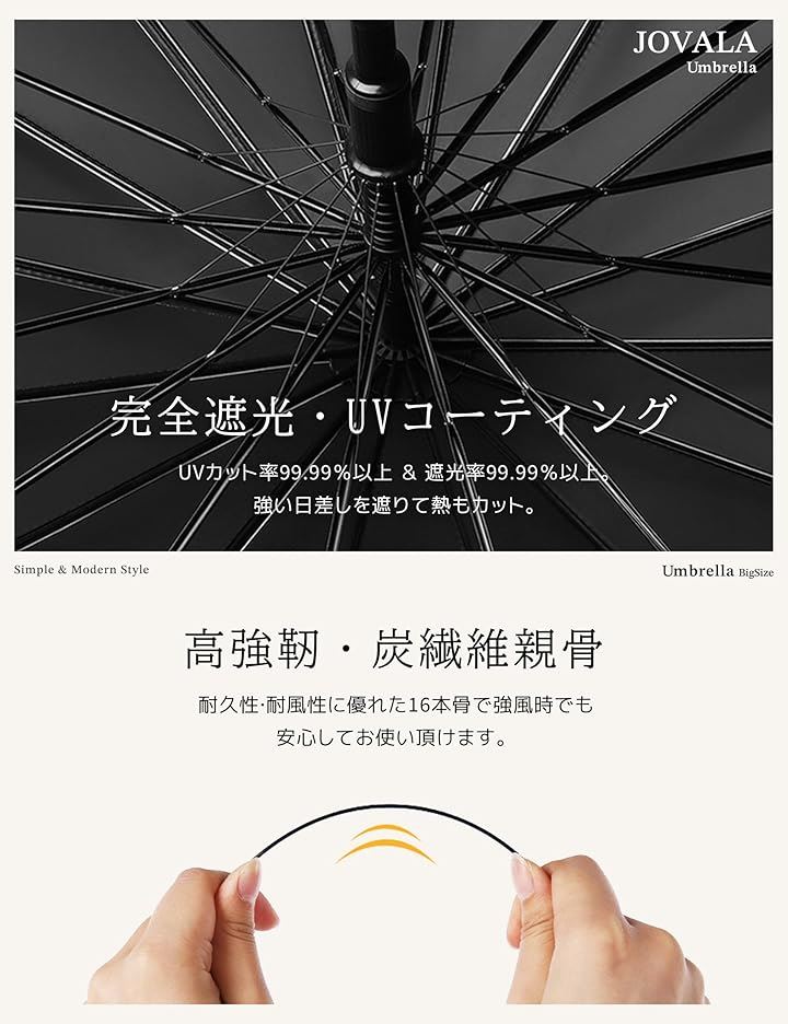重さ約450g 本骨数:16本骨 /サイズ:全長≈85cm、親骨≈60cm、開いた時の直径≈105cm
